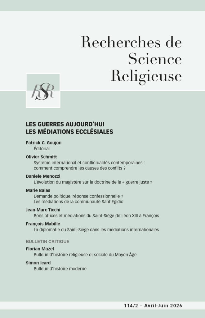 Si la paix semble un sujet beaucoup plus adapté que la guerre à l’espérance chrétienne et aux discours des souverains pontifes depuis au moins Benoît XV, les argumentaires qui promeuvent exclusivement la paix posent des questions théologiques de fond. Il est utile d’y regarder de plus près et de distinguer les discours publics de l’Église et son action médiatrice pendant les conflits. Ce numéro cherche à mettre en lumière ce que font des chrétiens qui proposent des médiations pour la paix en temps de conflits. Mais on ne limitera pas dans ce dossier l’Église au Saint-Siège ni les chrétiens aux catholiques. Les médiations diplomatiques du Saint-Siège comme les médiations exercées par d’autres au nom de leur foi sont des expressions d’un style évangélique, créatif, résistant et persévérant que le terme de non-violence ne décrit pas entièrement.